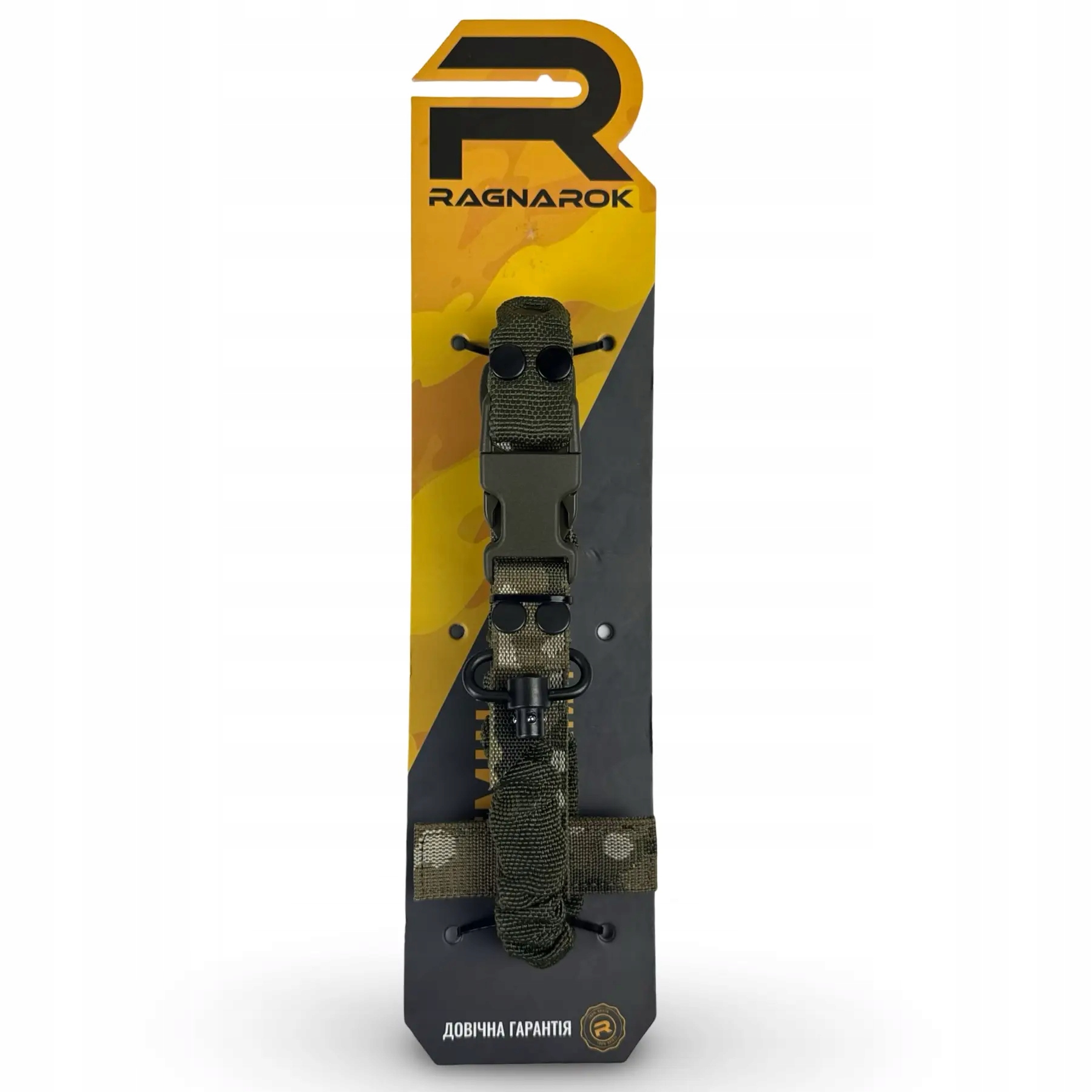 Pas naramienny Ragnarok na metalowych zaczepach QD w kolorach Multicam i Oliwka został wykonany z wytrzymałej poliamidowej taśmy rurowej oraz elastycznej gumy lotniczej.Jest to w pełni regulowany jednopunktowy pas do broni, który można przymocować za pomocą klamry T do dowolnej kamizelki, napierśnika lub kamizelki kuloodpornej kompatybilnej z systemem MOLLE