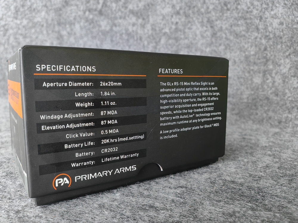 Model | Primary Arms GLx RS-15 Mini Reflex Sight |